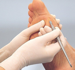 - A professional scalpel used to remove thick, calloused skin, clavuses or cuticle.