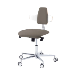 The classic work chair with individually adjustable and lockable backrest is equipped with a solid aluminium base and self-locking castors. The backrest element is shaped like a Napoleon hat, combined with an upholstered centre section. The wings of the chair are ideal for supporting the arms and relieving the back. The high-quality moulded wood is covered with an impact- and disinfectant-resistant CPL coating. The chair is supplied as a set. Available with short or long gas lift.