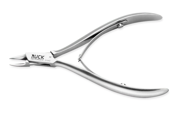 Angle clippers are used to cut and even the nails. Due to their strong, triangular shape, they are particularly useful while dealing with ingrowing nails.