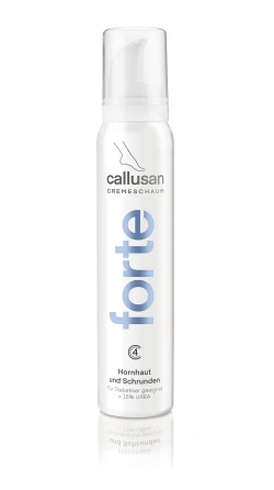Callusan FORTE is a foam cream for the care of extremely dry, thickened and cracked foot skin. It is designed for daily care when heels are hard and rough and the skin needs intensive softening and hydration. The light foam absorbs quickly, making regular use easier.