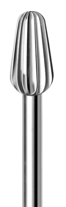 Frez Busch 75RS 050 w kształcie zaokrąglonego stożka wykonany z wysokiej jakości stali nierdzewnej, przeznaczony do efektywnego opracowywania paznokci. Dzięki średniej gradacji nacięć wzdłużnych pozwala na precyzyjne i bezpieczne usuwanie nadmiaru materiału z płytki paznokciowej.