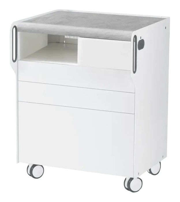 Szafka podologiczna RUCK ROOM move M z przegrodą na frezarkę po lewej stronie, 3 szuflady, CPL szary