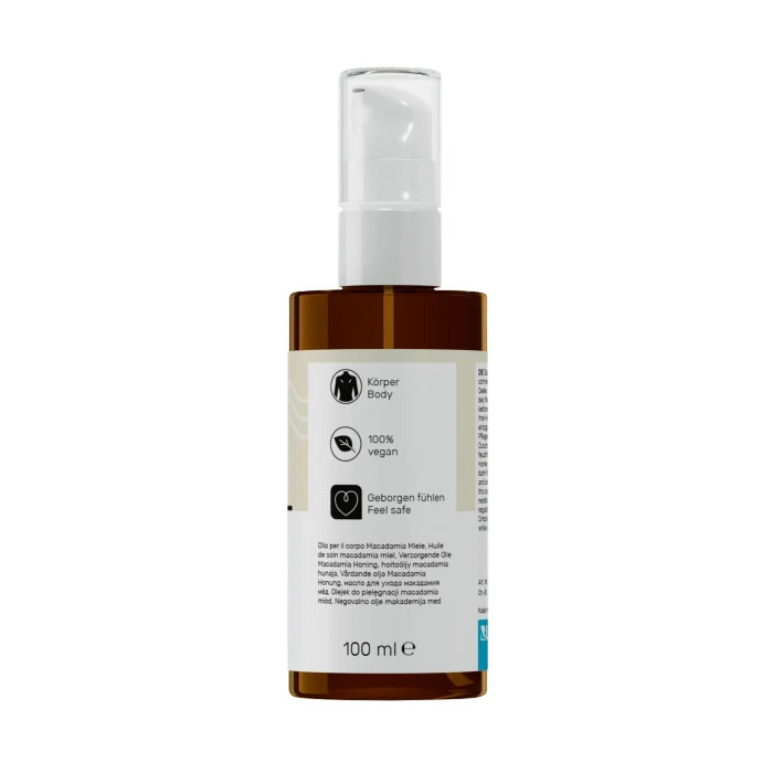 Olejek pielęgnacyjny peclavus® wellness makadamia miód szybko się wchłania i jest cennym balsamem dla skóry i dla duszy. Królowa orzechów i słodki zapach miodu pobudzają głęboko odczuwane uczucie wewnętrznego spokoju i delikatnej beztroski. Naturalna witamina E, regenerujący olej z orzechów makadamia i nawilżający organiczny olej jojoba sprawią, że Twoja skóra będzie jedwabiście miękka i pozostawią trwałe uczucie wypielęgnowanej skóry.