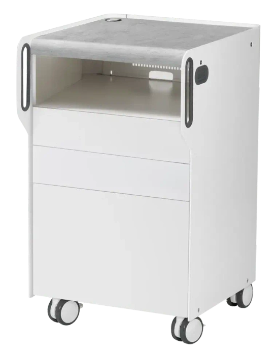 - Funkcjonalna szafka podologiczna ROOM move S - kompaktowy model z wnęką na frezarkę, 3 szufladami i blatem CPL. Świetnie sprawdza się w małych gabinetach. Mobilna, nowoczesna, z możliwością mocowania akcesoriów magnetycznych.