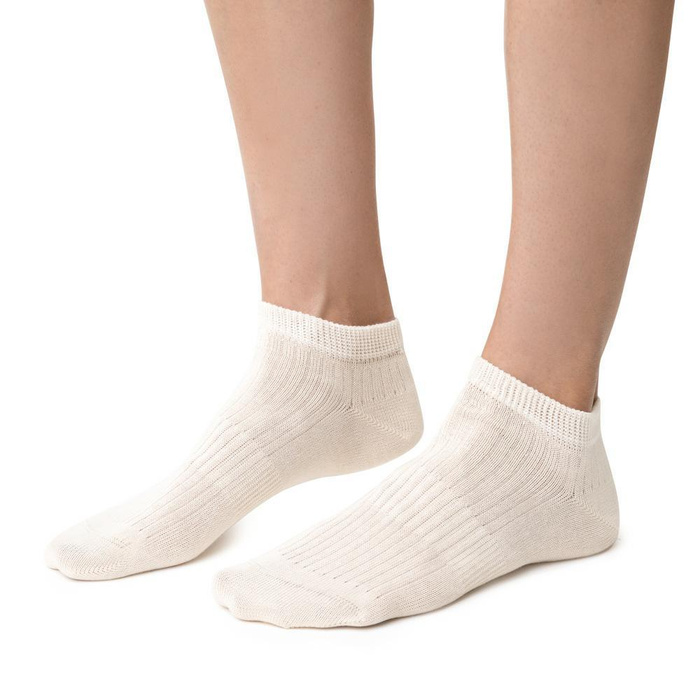 Bezszwowe wykończenie zwiększa komfort w okolicy palców i pomaga ograniczyć dyskomfort podczas chodzenia. Stopki są lekkie, w naturalnym kolorze i dobrze pasują do codziennego obuwia.